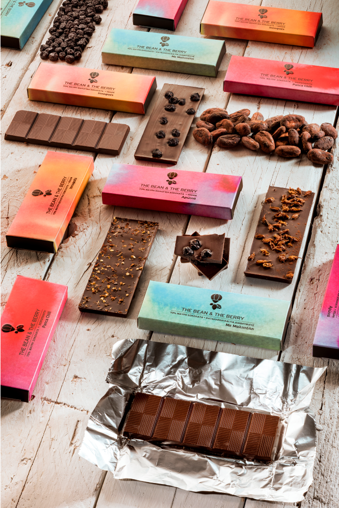 Η THE BEAN & THE BERRY είναι Ελληνική βιολογική χειροποίητη vegan μαύρη σοκολάτα, περιεκτικότητας 70% κακάο, που συμπληρώνεται με βιολογικές υπερτροφές, συνδυάζοντας υπέροχη γεύση, άρωμα και πλούσια οφέλη για την υγεία. Οι βιολογικές σοκολάτες διατίθενται σε δύο επιλογές υπερτροφών: ιπποφαές και αρώνια.